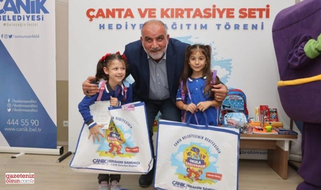 Canik’te 2023-2024 Eğitim Öğretim Yılı’nda ilkokul birinci sınıfa başlayan tüm öğrencilere çanta ve kırtasiye seti verdiklerini ifade eden Başkan İbrahim Sandıkçı, “Canik’imizde ilkokul birinci sınıfa başlayan öğrencilerimizin tamına çanta ve kırtasiye seti hediye ettik. Öğrencilerimize, çanta ve içerisinde yardımcı eğitim materyallerinin de yer aldığı kırtasiye setlerini okulun ilk günü sıralarında teslim ettik. İlçemizde ilkokul birinci sınıfa başlayan yaklaşık 2 bin öğrencilerimizle çanta ve kırtasiye setlerimizi buluşturduk” ifadelerini kullandı.