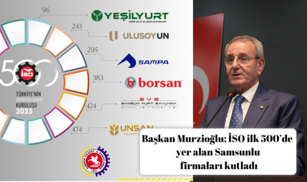 Samsun Ticaret ve Sanayi Odası (STSO) Yönetim Kurulu Başkanı Salih Zeki Murzioğlu, İSO’nun 2023 raporuna göre Türkiye'nin İlk 500 Sanayi Kuruluşu arasına girmeyi başaran Samsunlu altı firmayı kutlayarak, başarılarının devamını diledi.