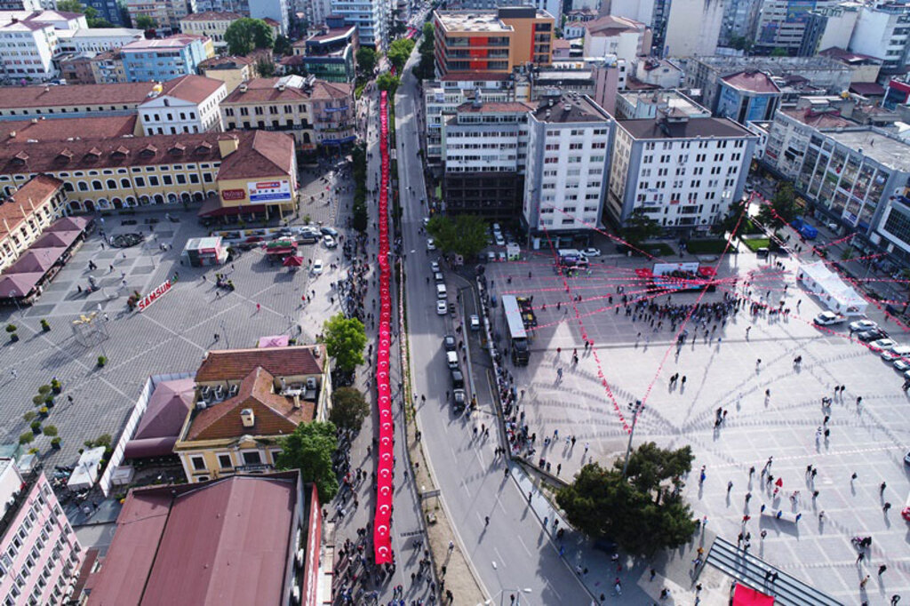 19 Mayıs Atatürk'ü Anma, Gençlik ve Spor Bayramı Samsun'da coşku içinde kutlanıyor. 1919 metrelik dev Türk bayraklı yürüyüş yapmak için yüzlerce izci, sporcu, antrenör, öğrenci ve öğretmen Cumhuriyet Caddesi'nde toplandı. Atatürk Anıt’ı önünden başlayan yürüyüş, Cumhuriyet, Lise ve İstiklal Caddeleri’nin ardından 19 Mayıs Bulvarı üzerinden devam etti.