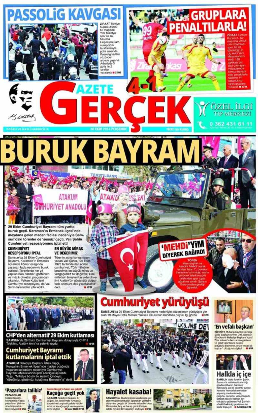 30 Ekim Perşembe Samsun'un Yerel Gazeteleri'nin birinci sayfaları - ARENA - DENGE - EKİP - HABER - HALK - GERÇEK - OLAY