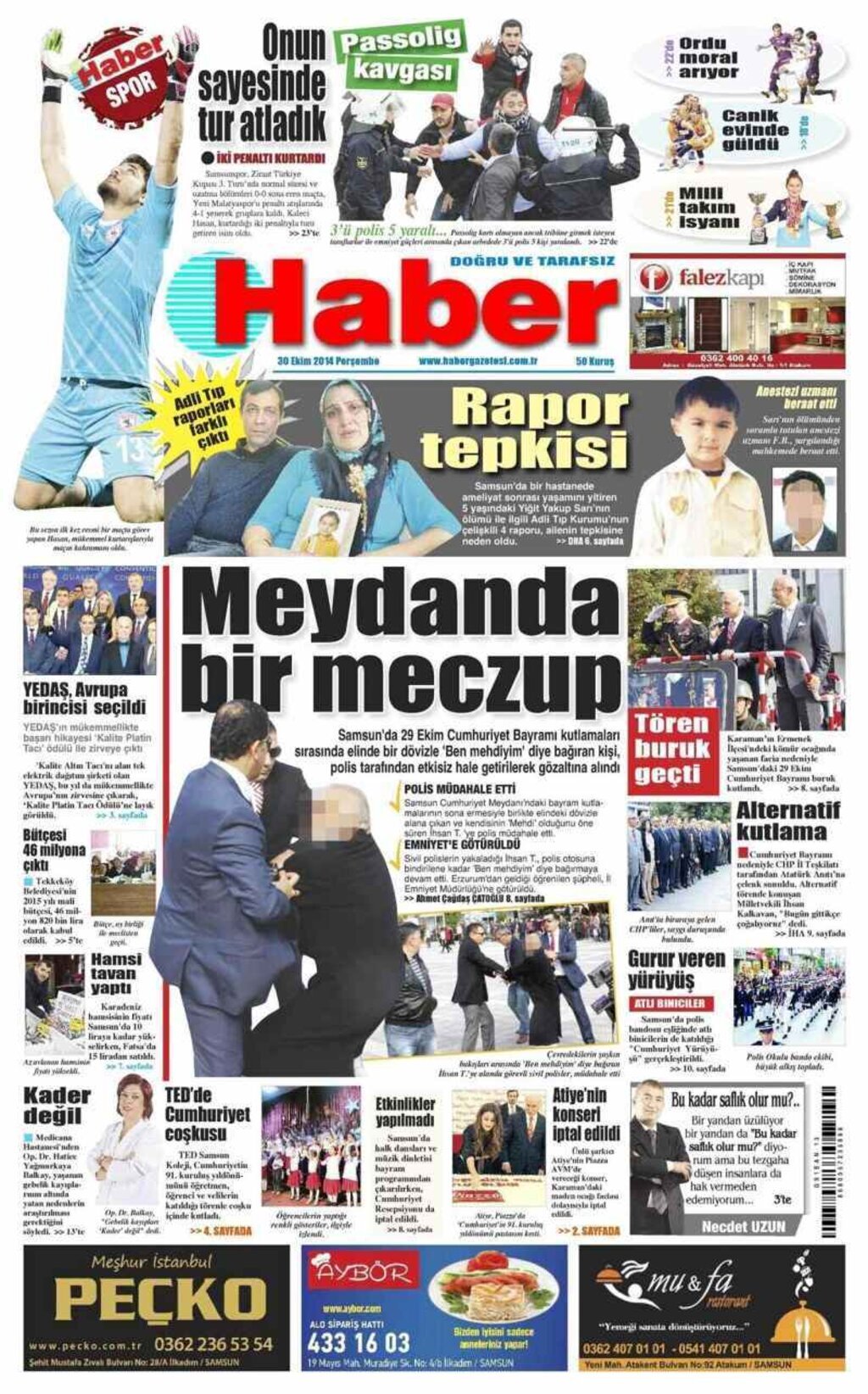 30 Ekim Perşembe Samsun'un Yerel Gazeteleri'nin birinci sayfaları - ARENA - DENGE - EKİP - HABER - HALK - GERÇEK - OLAY