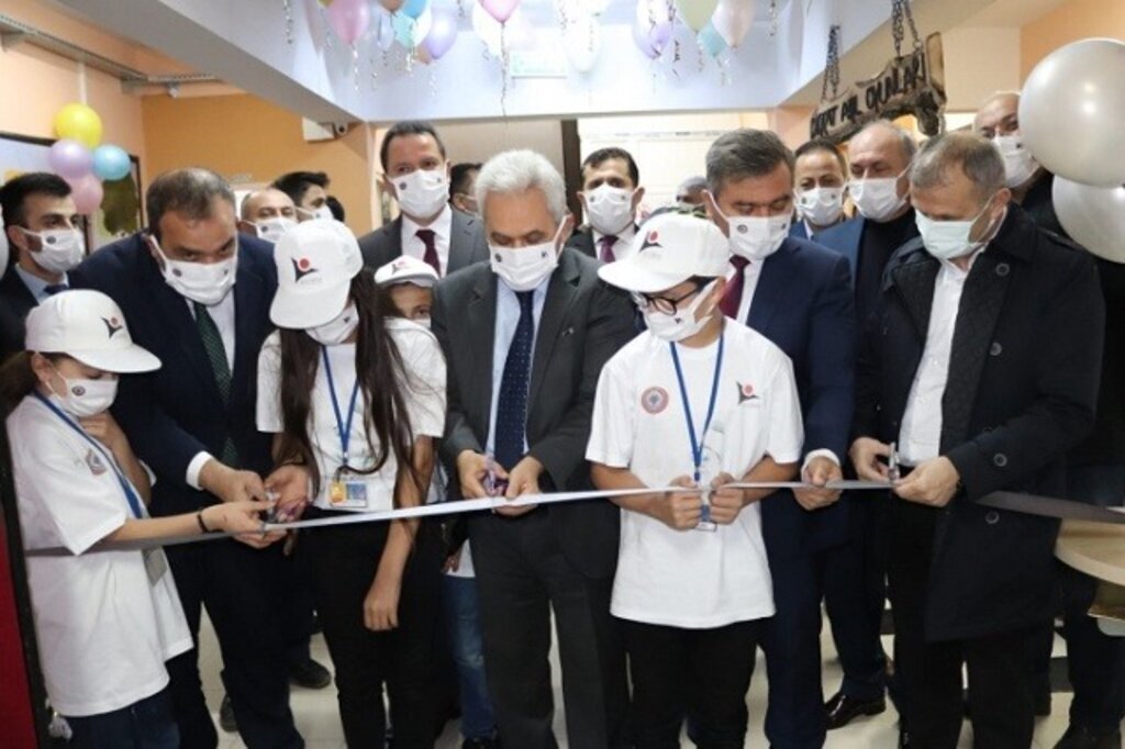 Konuşmaların ardından bilim fuarına katılan tüm protokol üyeleri hep birlikte kurdela keserek sergi açılışını gerçekleştirdiler. Öğrencilerin yapmış oldukları projeleri dikkat ve titizlikle inceleyen Kaymakam ve protokol üyeleri, öğrencilerden projeleri hakkında bilgi alarak başarı dileklerinde bulundular. Ardından aynı okul öğretmenleri tarafından okulun bir bölümünde, tamamen atıl ve geri dönüşüm malzemeleri kullanılarak oluşturulan hobi ve sanat atölyesi, bilim fuarına katılan Kaymakam ve protokol üyeleri tarafından açılarak büyük beğeni kazandı. Emeği geçen herkes tebrik edilerek teşekkür edildi.