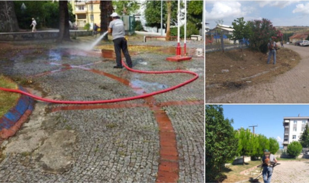 İlkadım Belediyesi'nden yapılan açıklamada; "Park ve Bahçeler Müdürlüğü ekiplerimiz, çocuklarımızın keyifli vakit geçirdiği parklarımızda yıkama ve çim biçme faaliyetlerini sürdürüyor. " denildi.