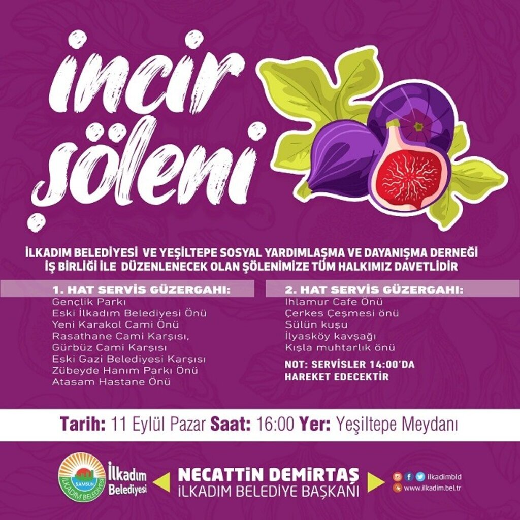 İlkadım Belediyesi tarafından İncir Şöleni Düzenlenecek. Belediyeden yapılan açıklamada; "Bu yıl ilk kez düzenlenen ve festival alanına ulaşımda ücretsiz servis imkanı sunulan "İncir Şöleni'ne tüm halkımız davetlimizdir.