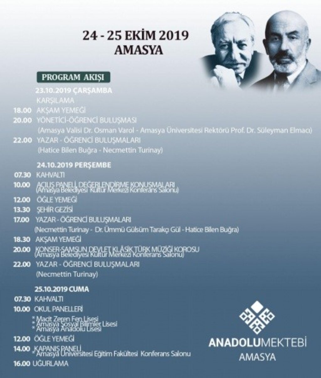Merkezi Ankara’da bulunan Anadolu Mektebi, 22-25 Ekim tarihleri arasında Samsun ve Amasya’da “Mehmet Akif Ersoy ve Tarık Buğra’nın Dilinden 100. Yılında Millî Mücadele” başlıklı bir dizi program düzenleyecek.