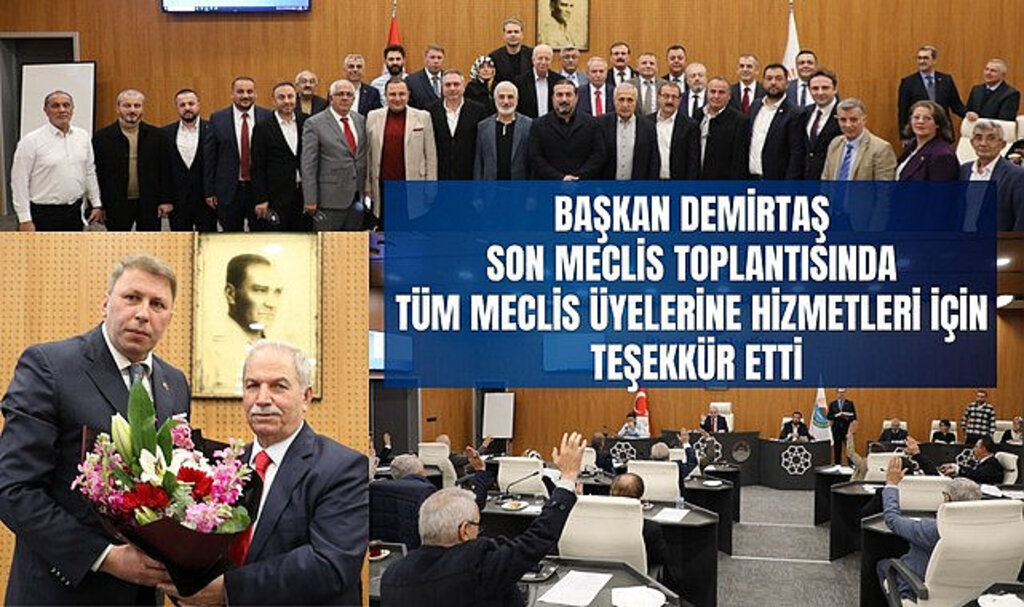 Meclis üyelerine görev süreleri boyunca vermiş oldukları hizmet için teşekkür eden Başkan Demirtaş, “Bugün 5 yıllık görev süremizin son meclisini hep beraber gerçekleştiriyoruz. Burada ilçemize ne yapabiliriz diye dertlendik. Dolayısıyla iyi niyetle bir 5 yılı tamamladık. Allah hepinizden razı olsun.Ben 2 dönem belediye başkanlığı yaptım. İkisinde de demokrasinin oturduğu bir meclis oldu. Güzel şeylere imza attık. Ataocağı,Refakatçi Evi,Şefkat Evi,Türkiye de ilk olan projeler. Ben tekrardan adayım. Sonuç itibariyle kazanmakta var kaybetmekte. Halkımızın iradesine hepimizin saygı duyması gerekiyor. Ben bu mecliste bu saygıyı yapmak için özel çaba gösterdim” ifadelerini kullandı.