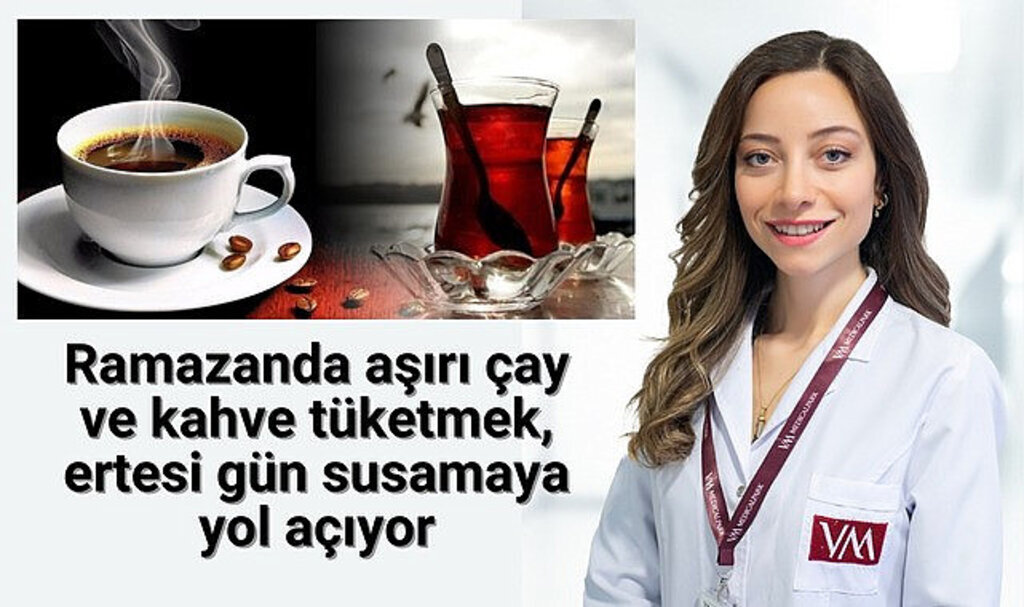 Ramazan ayında tüketilen çay ve kahvenin su ihtiyacını karşılamadığına dikkat çeken Beslenme ve Diyet Uzmanı Dyt. Tuğçe Yılmaz, “Ramazanda kısa yeme içme süresi nedeniyle su tüketimi zor olduğundan genellikle çay ve kahveye daha fazla önem verilir. Ancak çay ve kahve, diüretik etkileri nedeniyle vücuttan su atılımını hızlandırır. Ayrıca aşırı tüketildikleri takdirde ertesi gün susama sorununa da yol açabilir. Bu nedenle çay ve kahvenin miktarını azaltıp, günlük su tüketiminize önem vermelisiniz” dedi.