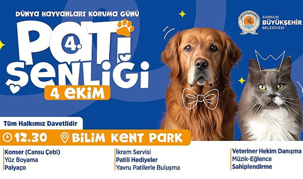 Samsun Büyükşehir Belediyesi tarafından, 4 Ekim Dünya Hayvanları Koruma Günü’nde ‘Pati Şenliği’ düzenleniyor. 4’üncüsü gerçekleşecek Pati Şenliği’nde bu yıl da hayvanseverler ve patili dostlar bir araya gelecek.
