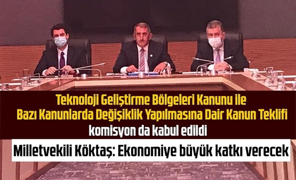 Teknoloji Geliştirme Bölgeleri Kanunu ile Bazı Kanunlarda Değişiklik Yapılmasına Dair Kanun Teklifi, TBMM Sanayi, Ticaret, Enerji, Tabii Kaynaklar, Bilgi ve Teknoloji Komisyonu Başkanı, Kayseri Milletvekili Mustafa Elitaş Başkanlığı'nda toplanan komisyonda görüşülüp kabul edildi.