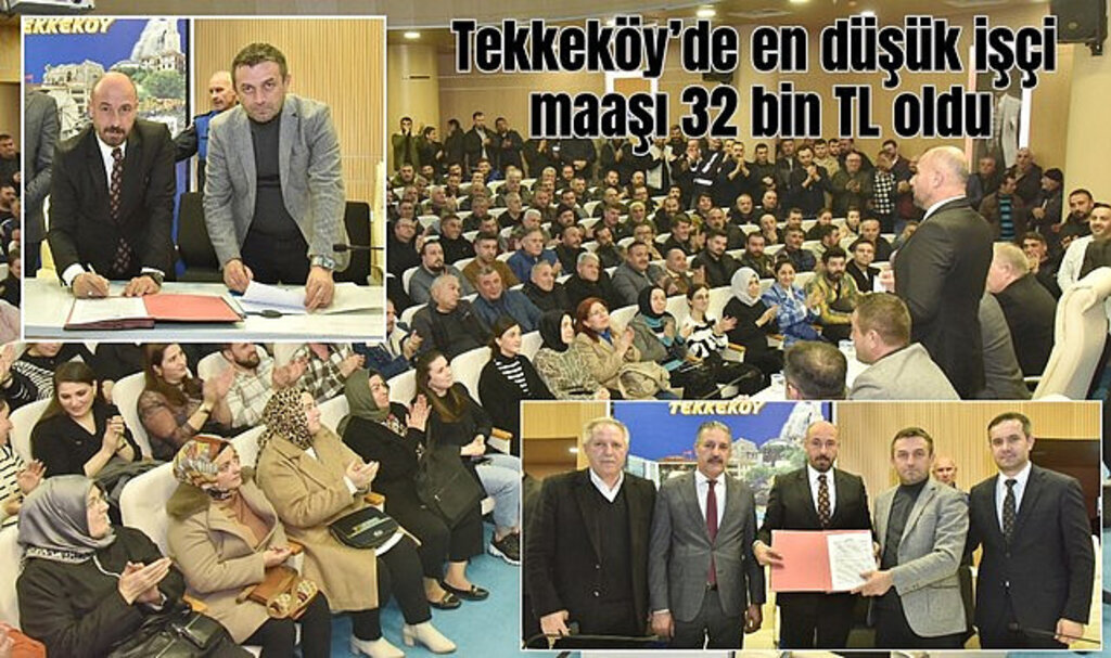 Tekkeköy Belediyesi ile Hizmet-İş Sendikası arasında 2024 yılı toplu iş sözleşmesi imzalandı. Tekkeköy Belediyesi Ömer Halisdemir Konferans Salonu’nda yapılan toplu iş sözleşmesi Tekkeköy Belediye Başkanı Hasan Togar, Hizmet-İş Sendikası Samsun Şube Başkanı Ziya Uzun, birim müdürleri ve belediye işçilerinin katılımıyla gerçekleştirildi.